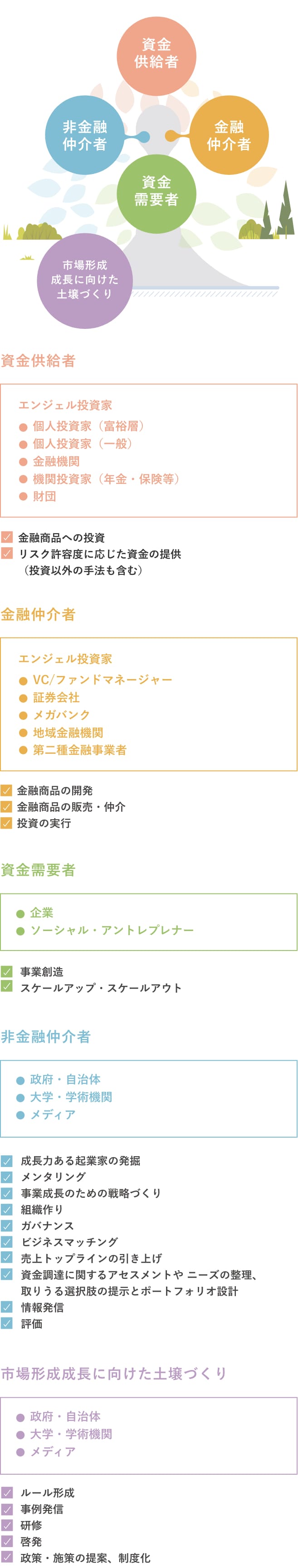 インパクト投資の発展には、それぞれの担い手の成長と発展、量的・質的な拡充が必要です。注1